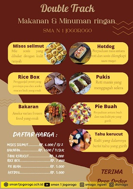 Kami yakin bahwa perjalanan pendidikan di SMA Double Track khususnya SMAN 1 Jogorogo bukan hanya tentang mempersiapkan siswa untuk menghadapi ujian akademis, tetapi juga membekali mereka dengan nilai-nilai kewirausahaan, mandiri, dan tanggung jawab.